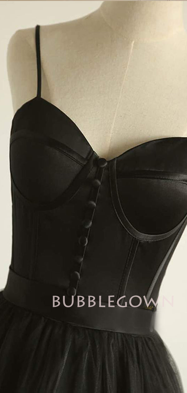 Black Tulle A-Line Cheap Long Evening Prom Dresses, Custom Prom Dress, MR7331