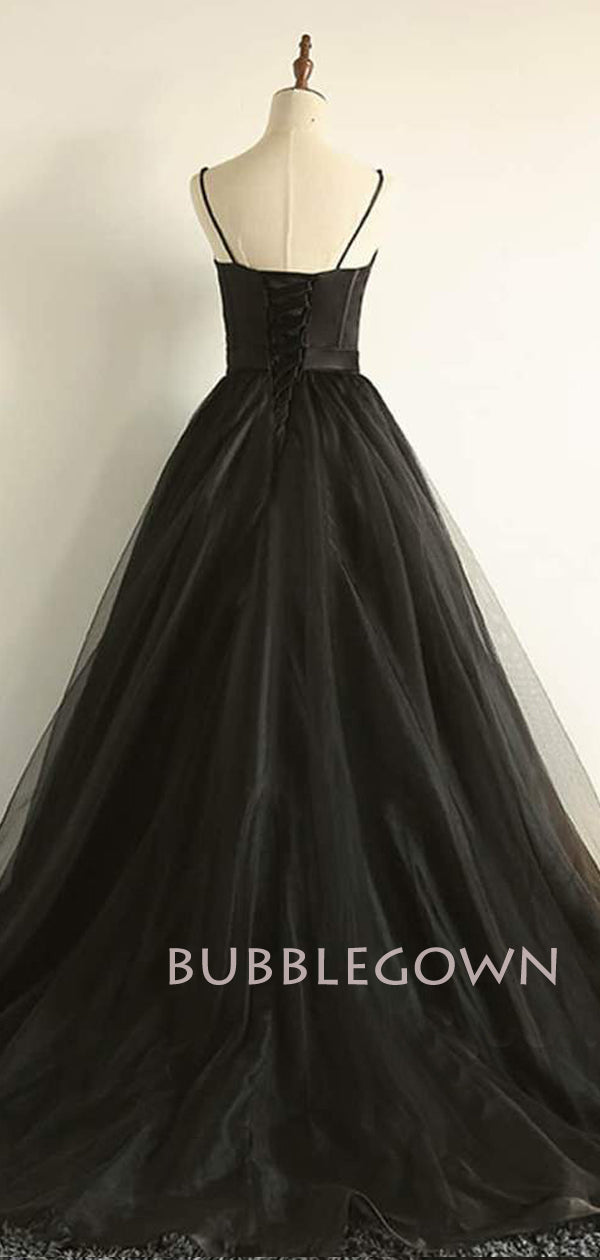 Black Tulle A-Line Cheap Long Evening Prom Dresses, Custom Prom Dress,