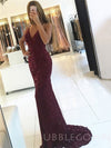 Mermaid Burgunndy Sequin Backless Long Evening Prom Dresses, Cheap Custom Prom Dresses, MR7723