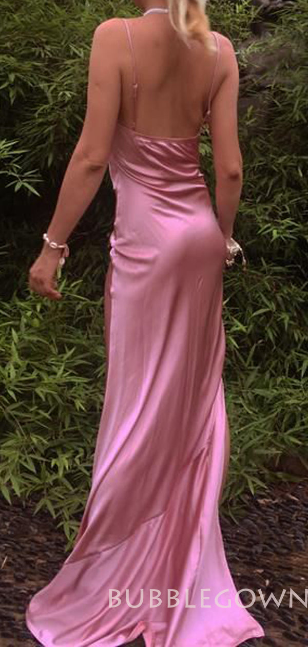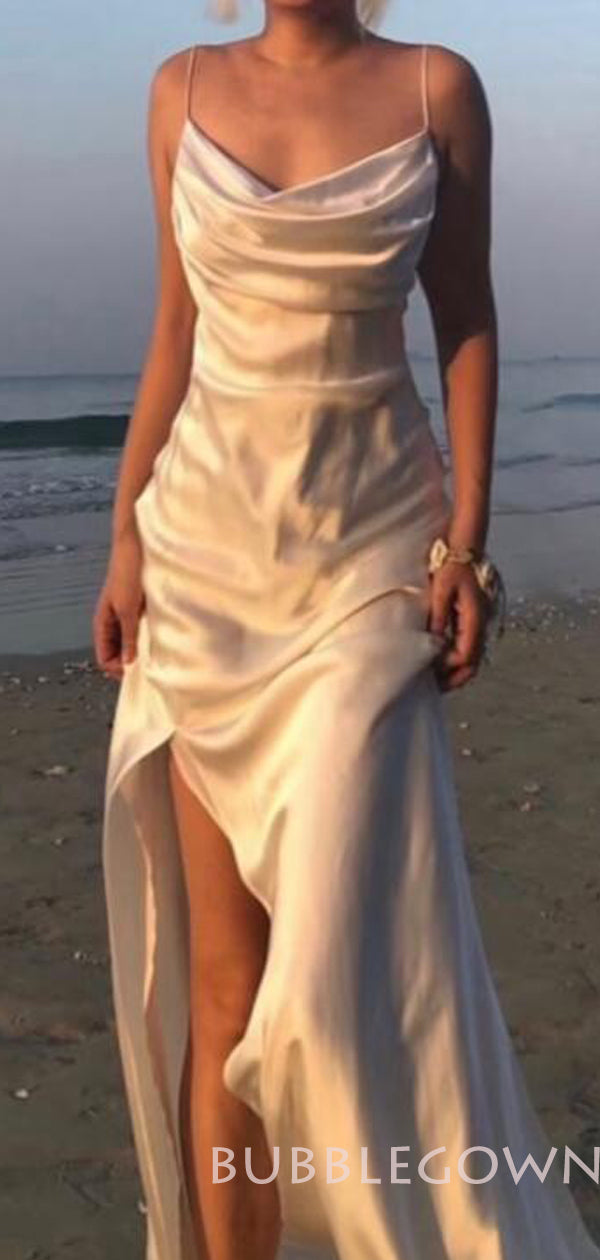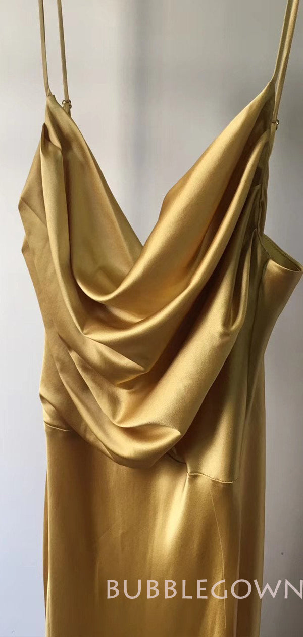 Sheath Purple Satin Spaghetti Straps Long Cowl Neck Evening Prom Dresses, MR8091