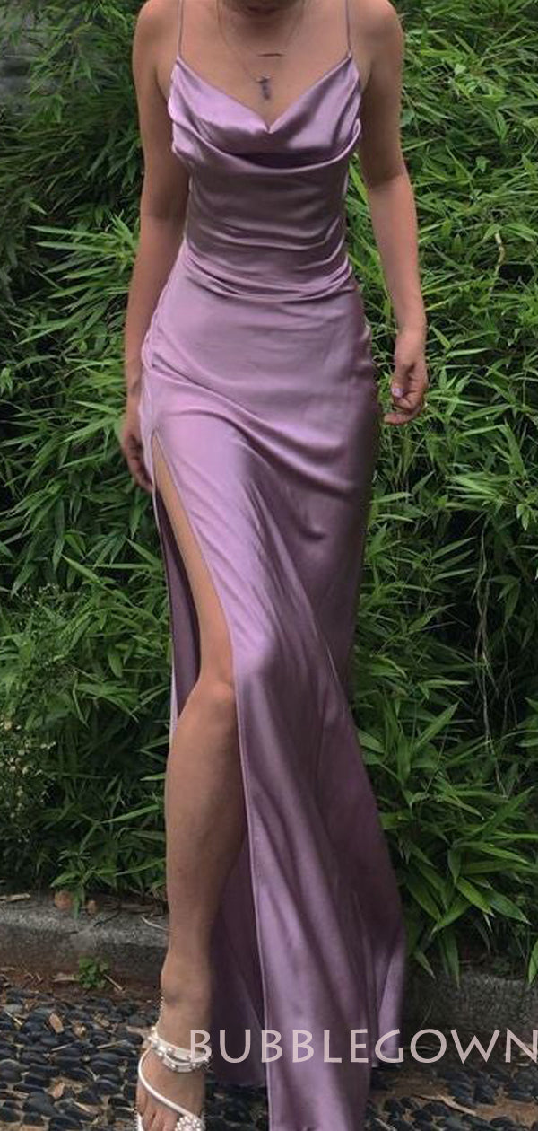 Sheath Purple Satin Spaghetti Straps Long Cowl Neck Evening Prom Dresses, MR8091 Sheath Purple Satin Spaghetti Straps Long Cowl Neck Evening Prom Dresses, MR8091