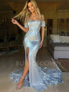 Sliver Sequin Off Shoulder Mermaid Long Side Slit Evening Prom Dresses