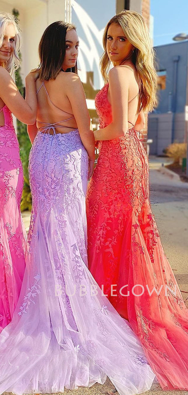Spaghetti Straps Mermaid Lace backless Long Evening Prom Dresses, MR72