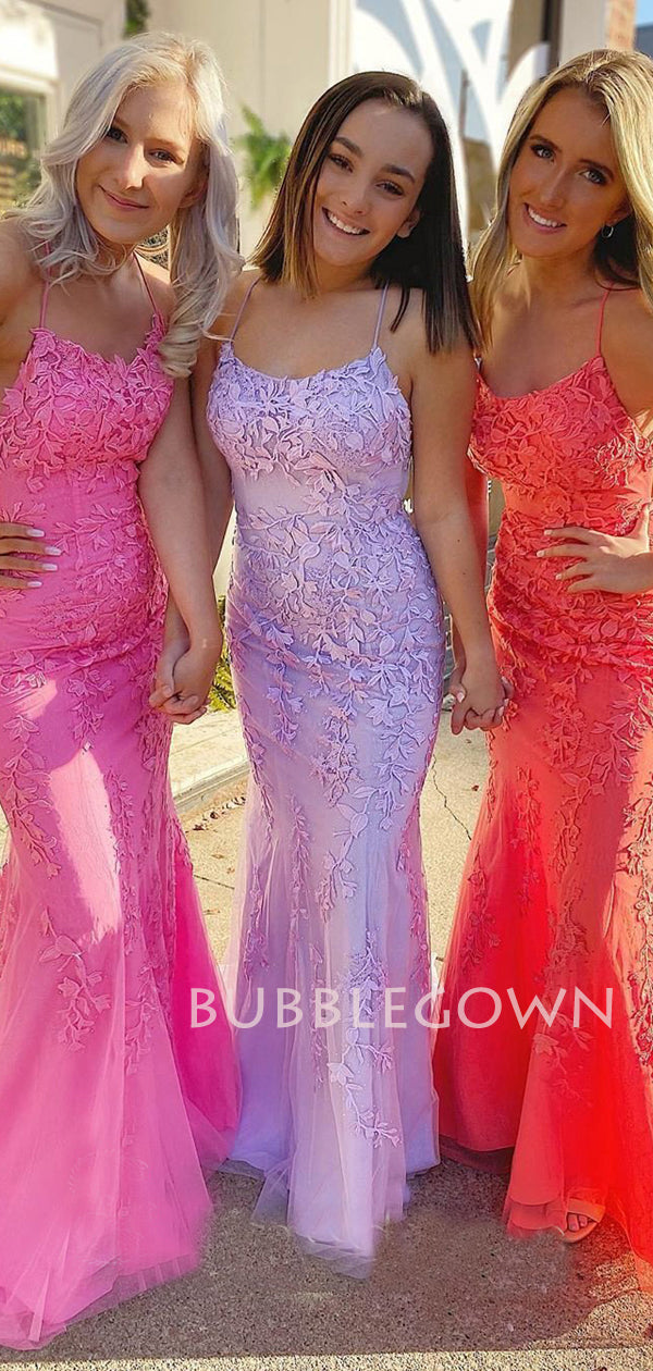 Spaghetti Straps Mermaid Lace backless Long Evening Prom Dresses, MR7268