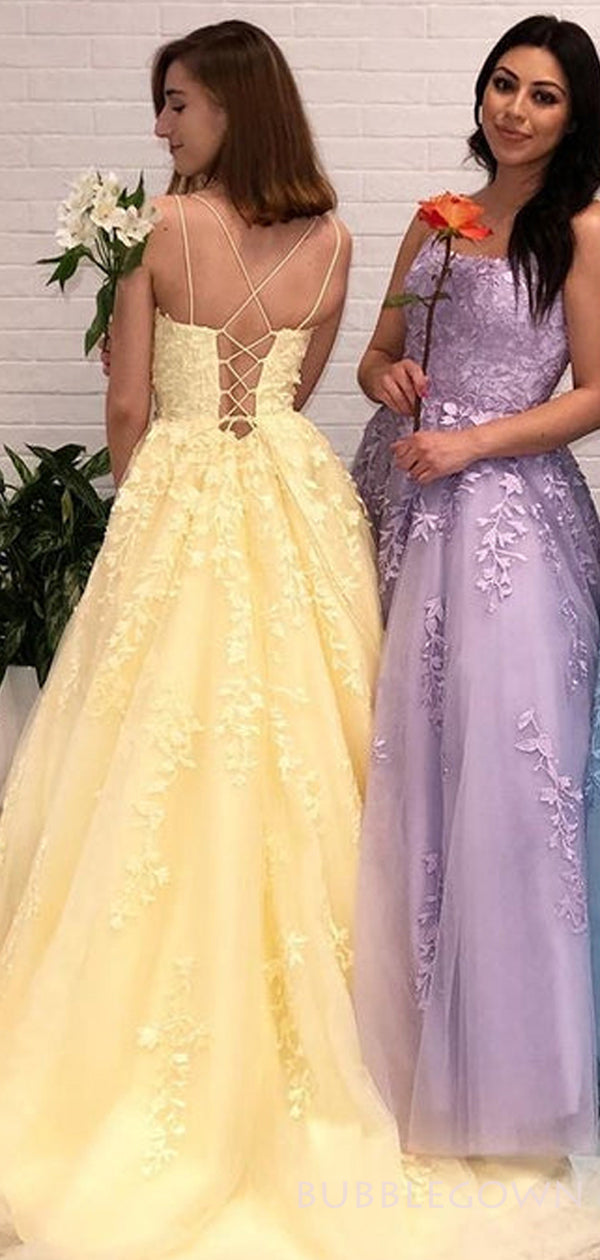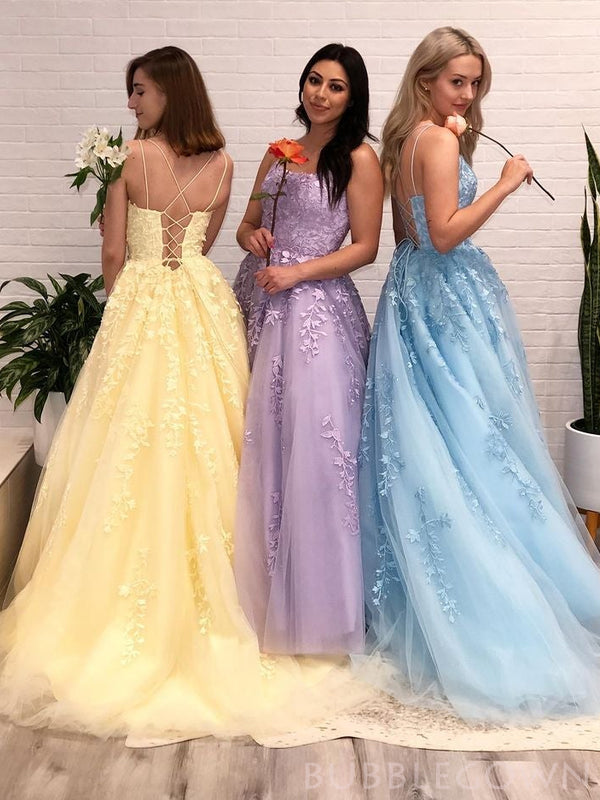Spaghetti Straps Tulle Appliques Long Evening Prom Dresses, A-line Custom Prom Dress, MR8286 Spaghetti Straps Tulle Appliques Long Evening Prom Dresses, A-line Custom Prom Dress, MR8286