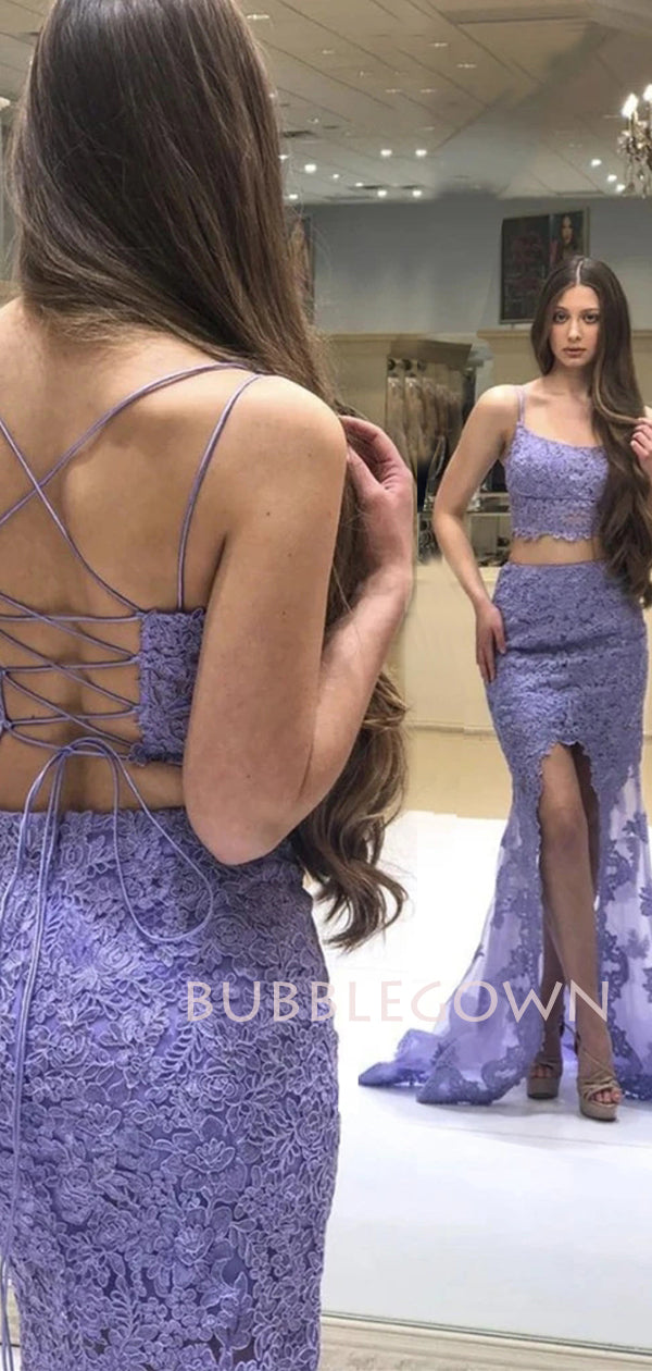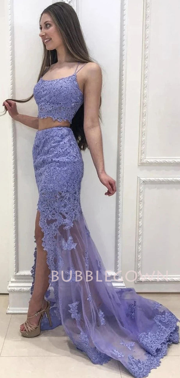Two Pieces Mermaid Cheap Lace Long Evening Sweet Dresses,Long Prom dresses, MR7110
