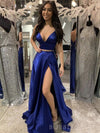 Two Pieces Royal Blue Satin A-line Long Evening Prom Dresses, Custom Prom Dress, BGS0147