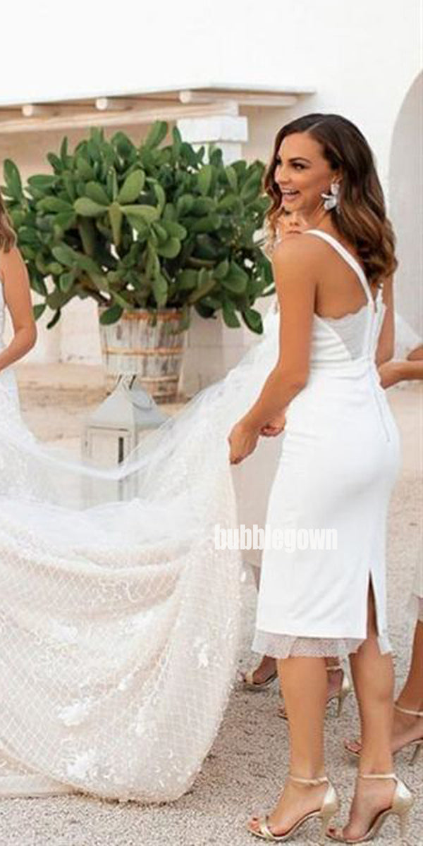 Elegant White Spaghetti Strap Mermaid Short Bridesmaid Dresses BMD028 Elegant White Spaghetti Strap Mermaid Short Bridesmaid Dresses BMD028