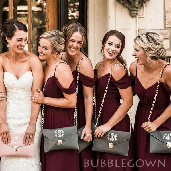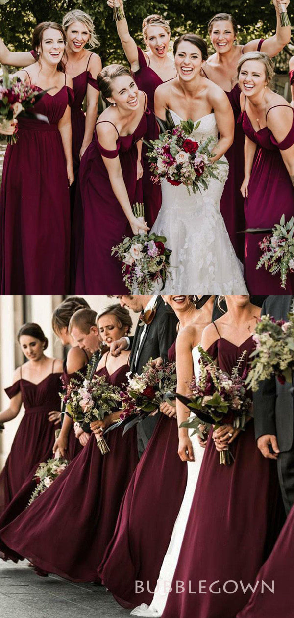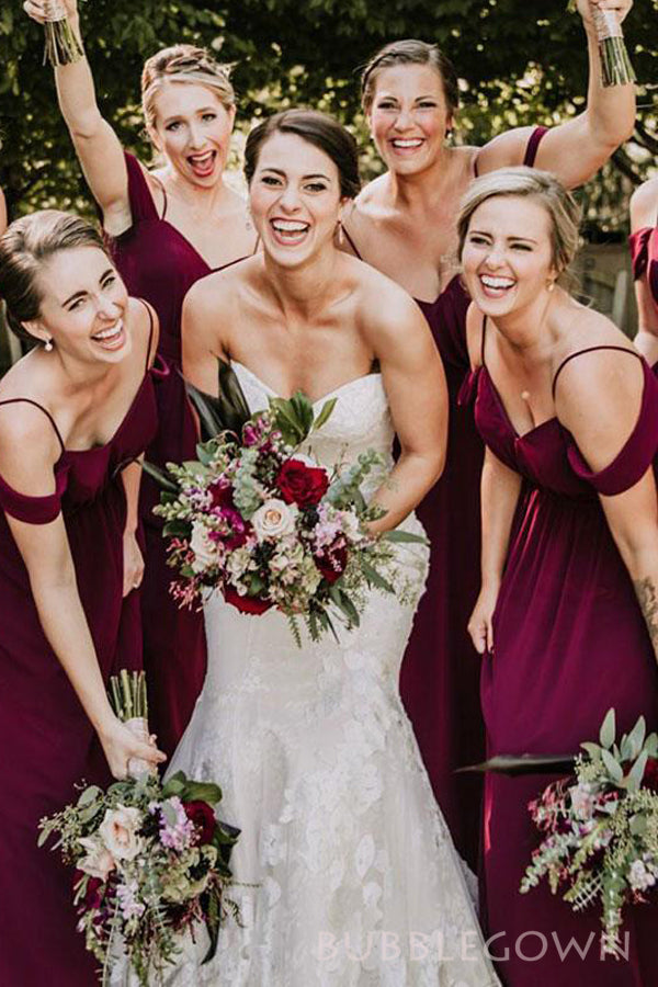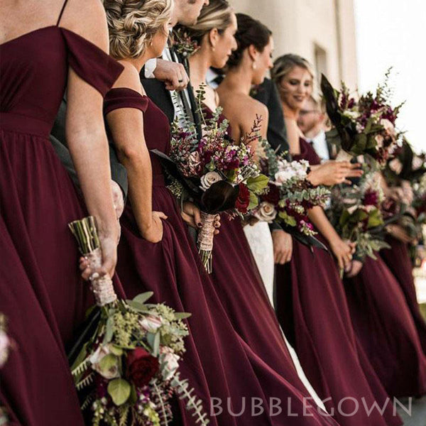 Off Shoulder Burgundy Chiffon A-line Cheap Long Custom Bridesmaid Dresses , BGB0034 Off Shoulder Burgundy Chiffon A-line Cheap Long Custom Bridesmaid Dresses , BGB0034
