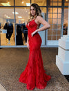 Deep V-neck Red Lace Spaghetti Straps Long Mermaid Evening Prom Dresses, MR8099 Deep V-neck Red Lace Spaghetti Straps Long Mermaid Evening Prom Dresses, MR8099