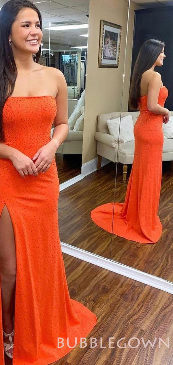 Orange Mermaid Staspless Beaded Long Evening Prom Dresses, Cheap Custom Prom Dresses, MR8006