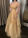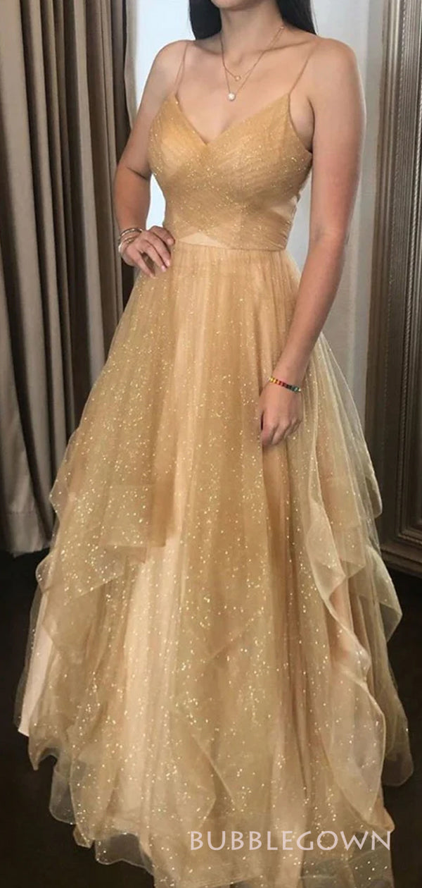 Spaghetti Straps A-line Tulle Long Evening Prom Dresses, Custom V-neck Prom Dress, BGS0193