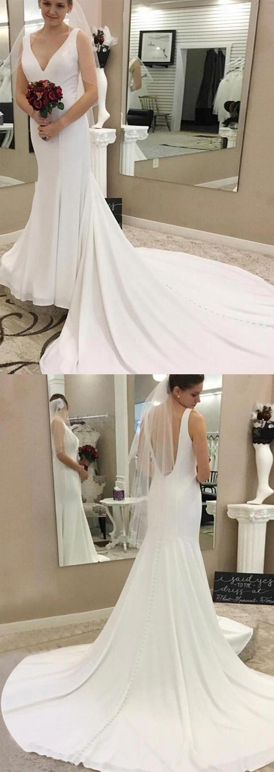 Elegant Simple Cheap V Neck Mermaid Long Bridal Wedding Dresses, BGP245 Elegant Simple Cheap V Neck Mermaid Long Bridal Wedding Dresses, BGP245