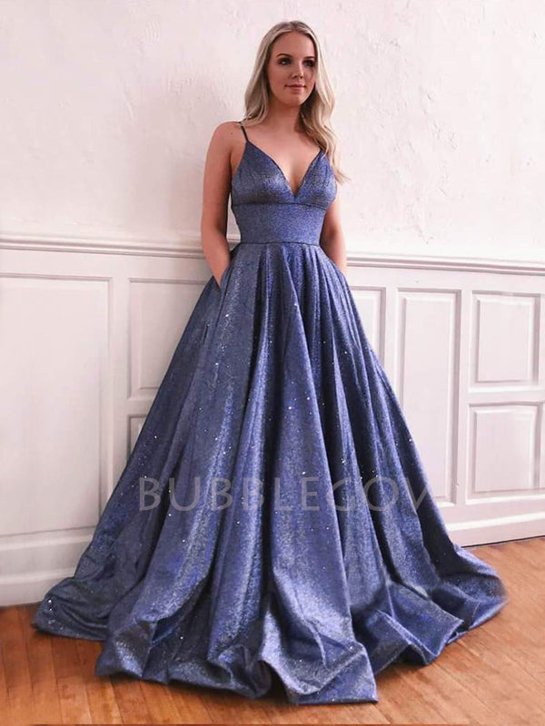 Deep V Neck A-Line Sparkly Backless Long Evening Prom Dresses, Cheap Custom Dresses,MR7484