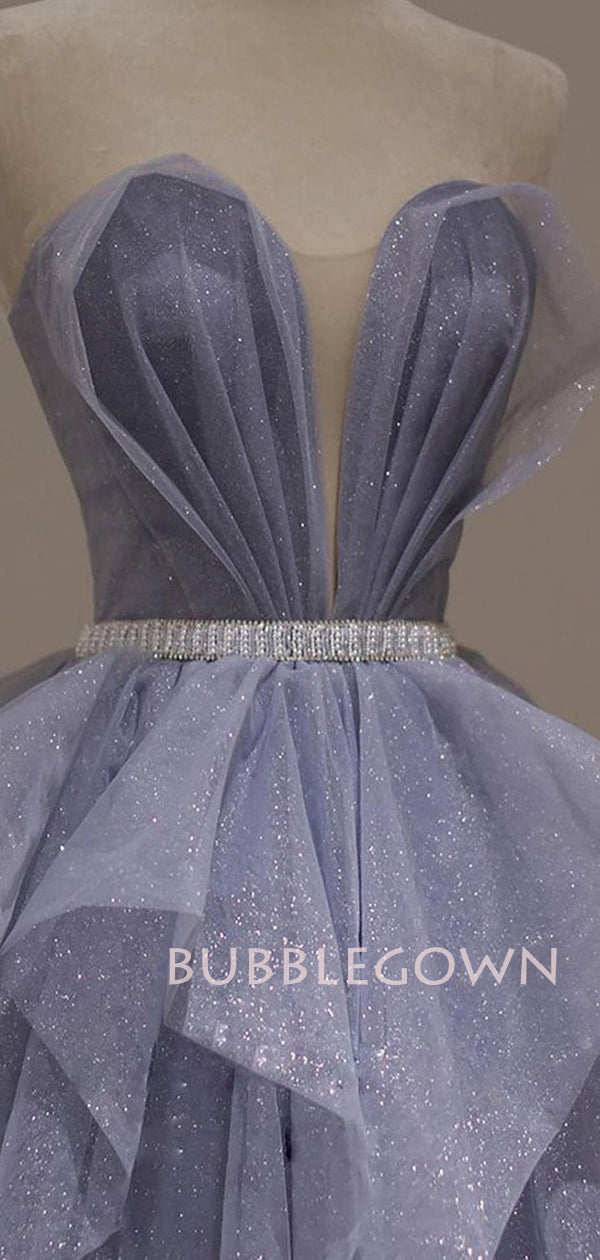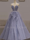 Deep V Neck Tulle A-line Long Evening Prom Dresses, Cheap Custom Prom Dress, MR7332
