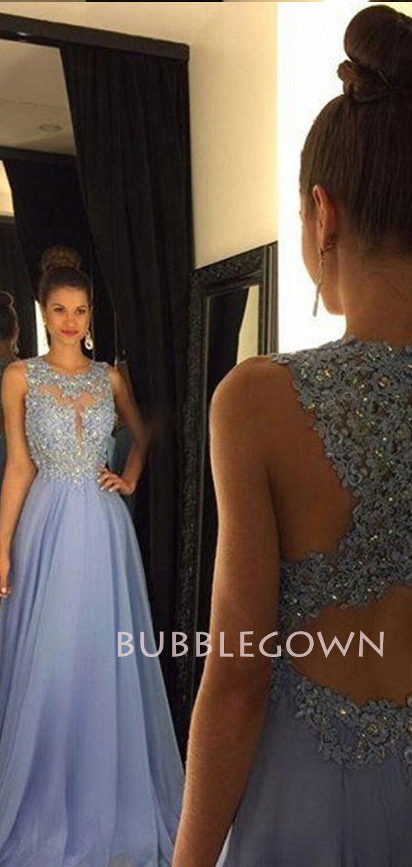 Dusty Blue Long Chiffon Evening Prom Dresses, Cheap Custom Sweet Prom Dresses, MR7179