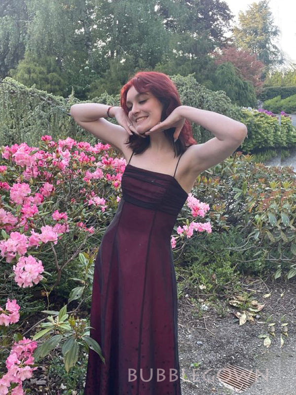 Lovely Black Tulle Spaghetti Straps Long Prom Dresses, BGS0467 Lovely Black Tulle Spaghetti Straps Long Prom Dresses, BGS0467