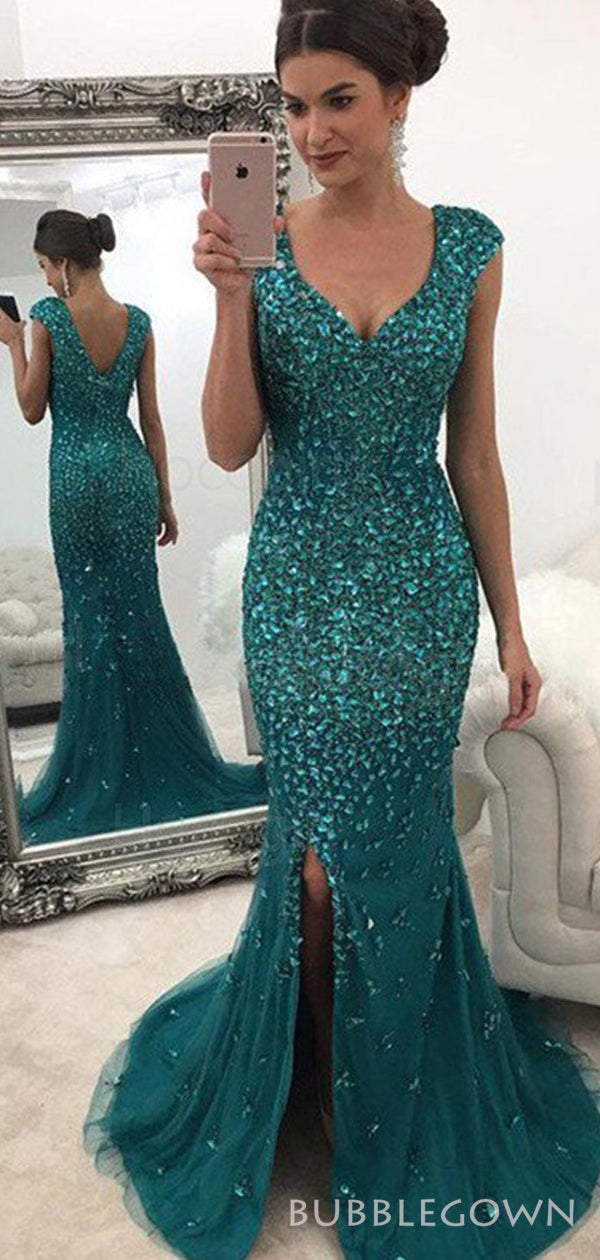Mermaid peacock Tulle Scoop Long Beaded Evening Prom Dresses, MR8125 Mermaid peacock Tulle Scoop Long Beaded Evening Prom Dresses, MR8125