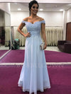 Sexy Off Shoulder Long Blue Chiffon Evening Prom Dresses, Cheap Custom Sweet Prom Dresses, MR7180
