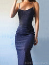 Simple Mermaid Spaghetti Straps Navy Blue Sparkly Long Evening Prom Dresses, Custom Prom Dresses, MR8304