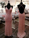 Mermaid Sequin Long Spaghetti Straps Evening Prom Dresses, Cheap Custom Prom Dresses, MR7951