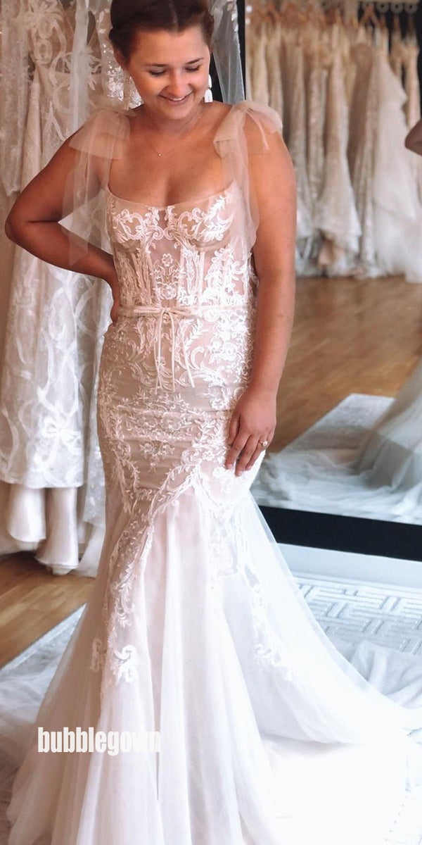 Elegant Spaghetti Strap Lace Mermaid Wedding Dresses, BGH084 Elegant Spaghetti Strap Lace Mermaid Wedding Dresses, BGH084