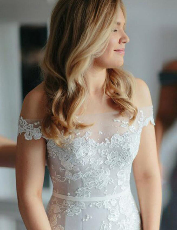 Off the Shoulder Applique Mermaid Charming Long Bridal Wedding Dresses