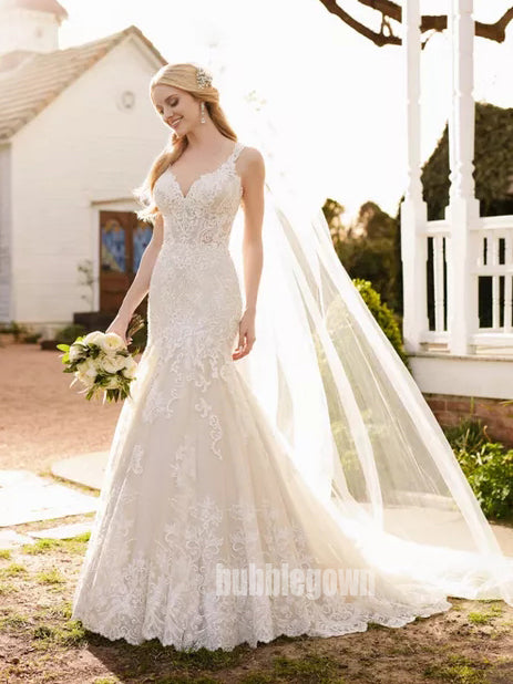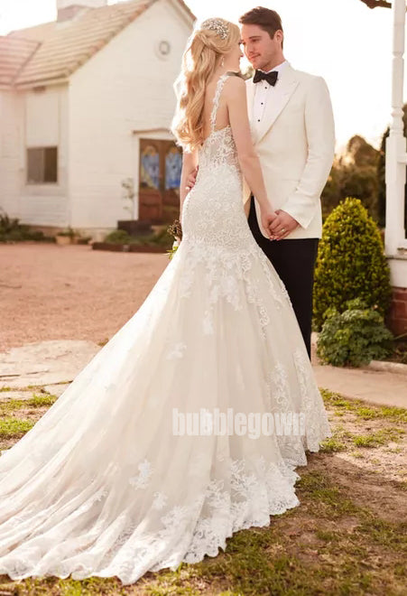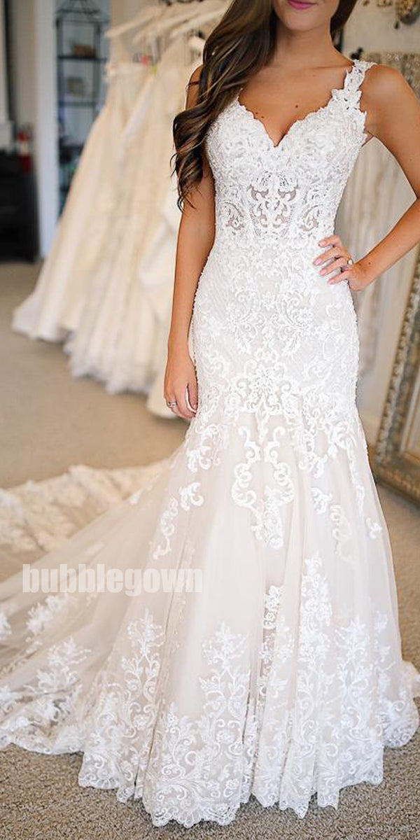 Mermaid Lace Applique Elegant Bridal Long Wedding Dresses, BGP265